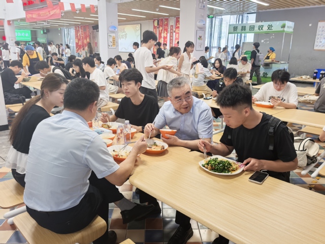 本站讯(后勤与基建管理处 供稿)为贯彻落实习近平总书记关于食品安全“四个最严”要求,全面巩固“校园餐”深化整治成果,按照省教育厅要求,落实食堂管理领导小组工作安排,9月29日中午,校党委副书记、校长蔡海生,校党委委员、副校长黄诚一行深入我校本部二食堂一楼,与刚下课的在校学生一起就餐并指导学校食堂食品安全工作。